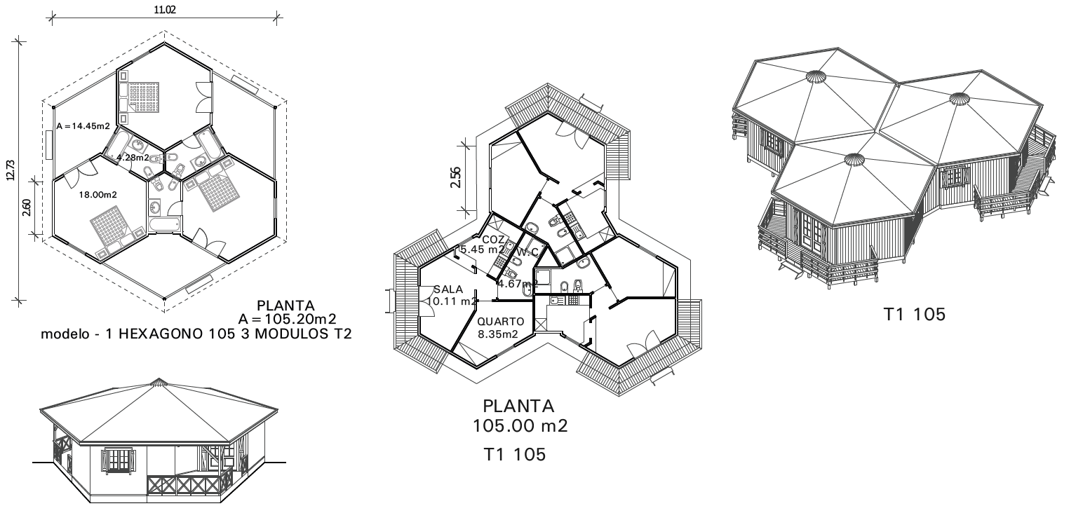 Modelo Bungalow Triple Hexagonal